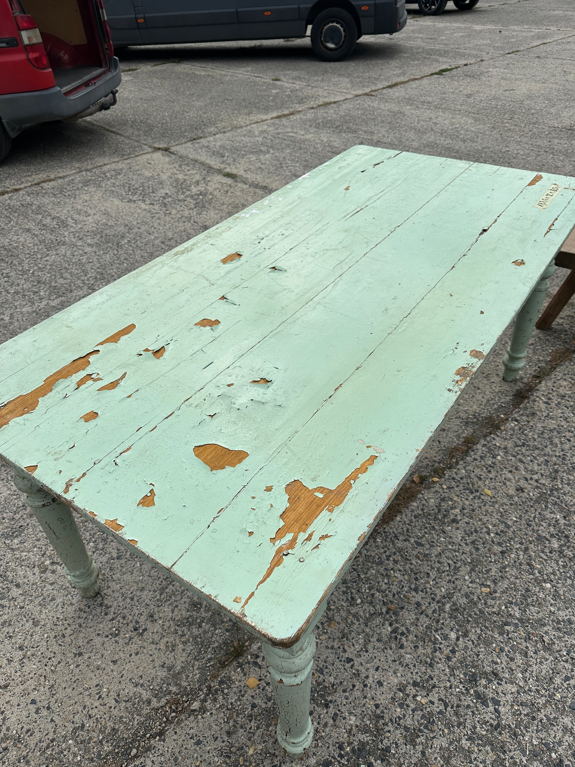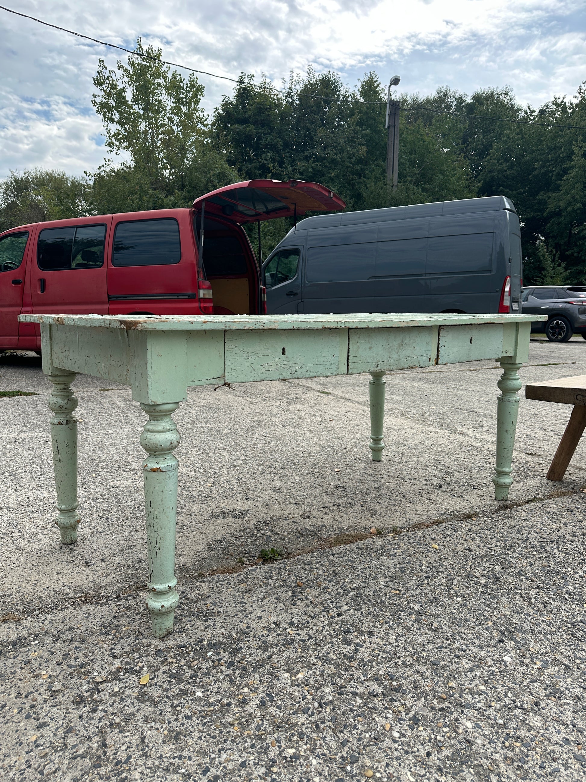 Ett gammalt stort och vackert bord med vackra svarvade ben som tidigare stått hos en skräddare i Ungern.