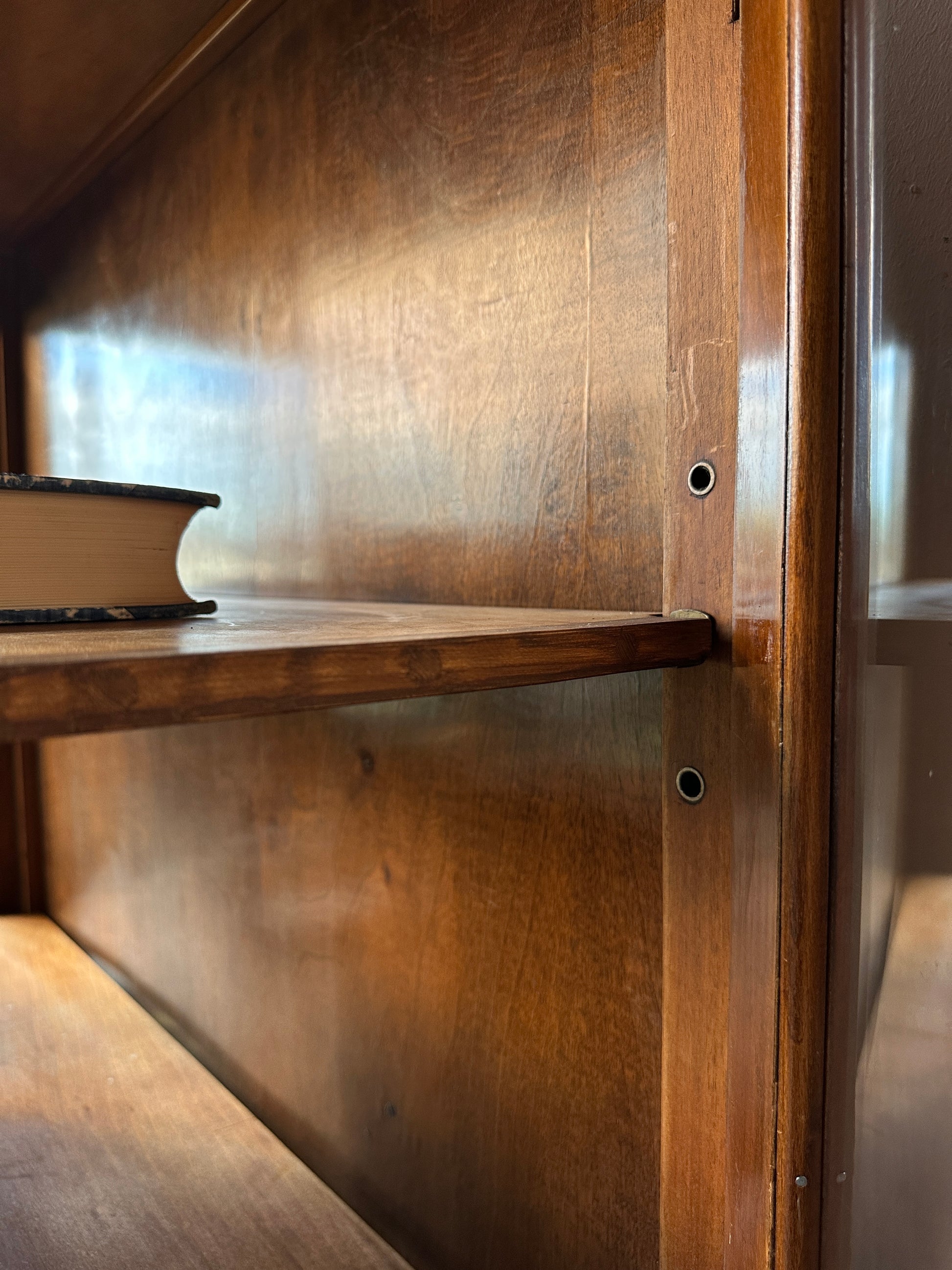 Ett gammalt, elegant vitrinskåp/displayskåp med ett fantastiskt ljusinsläpp tack vare glas både fram och i sidorna på skåpet. Skåpet överdel öppnas på sidorna. För extra, dold förvaring finns även ett underskåp med dubbeldörrar.