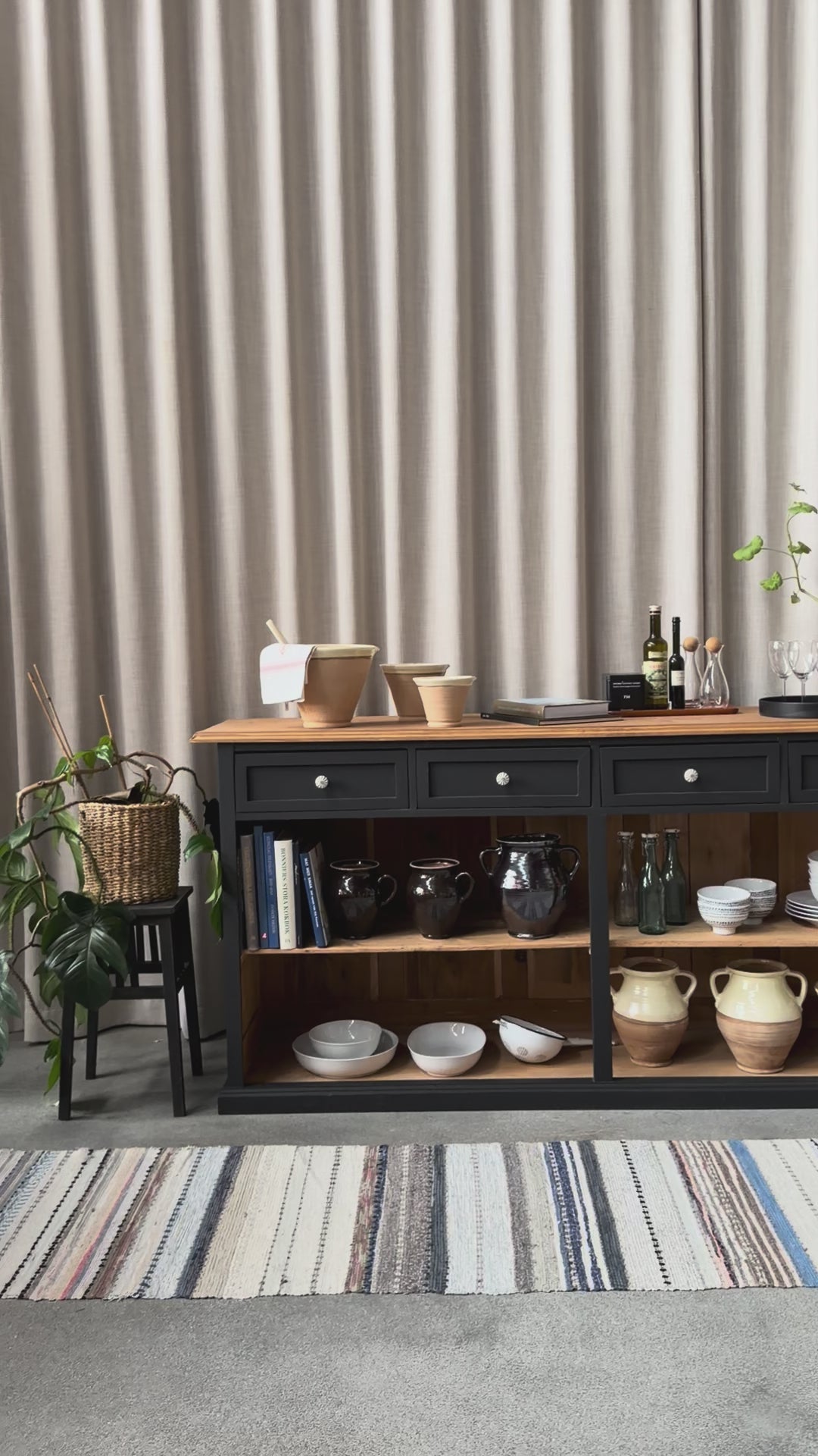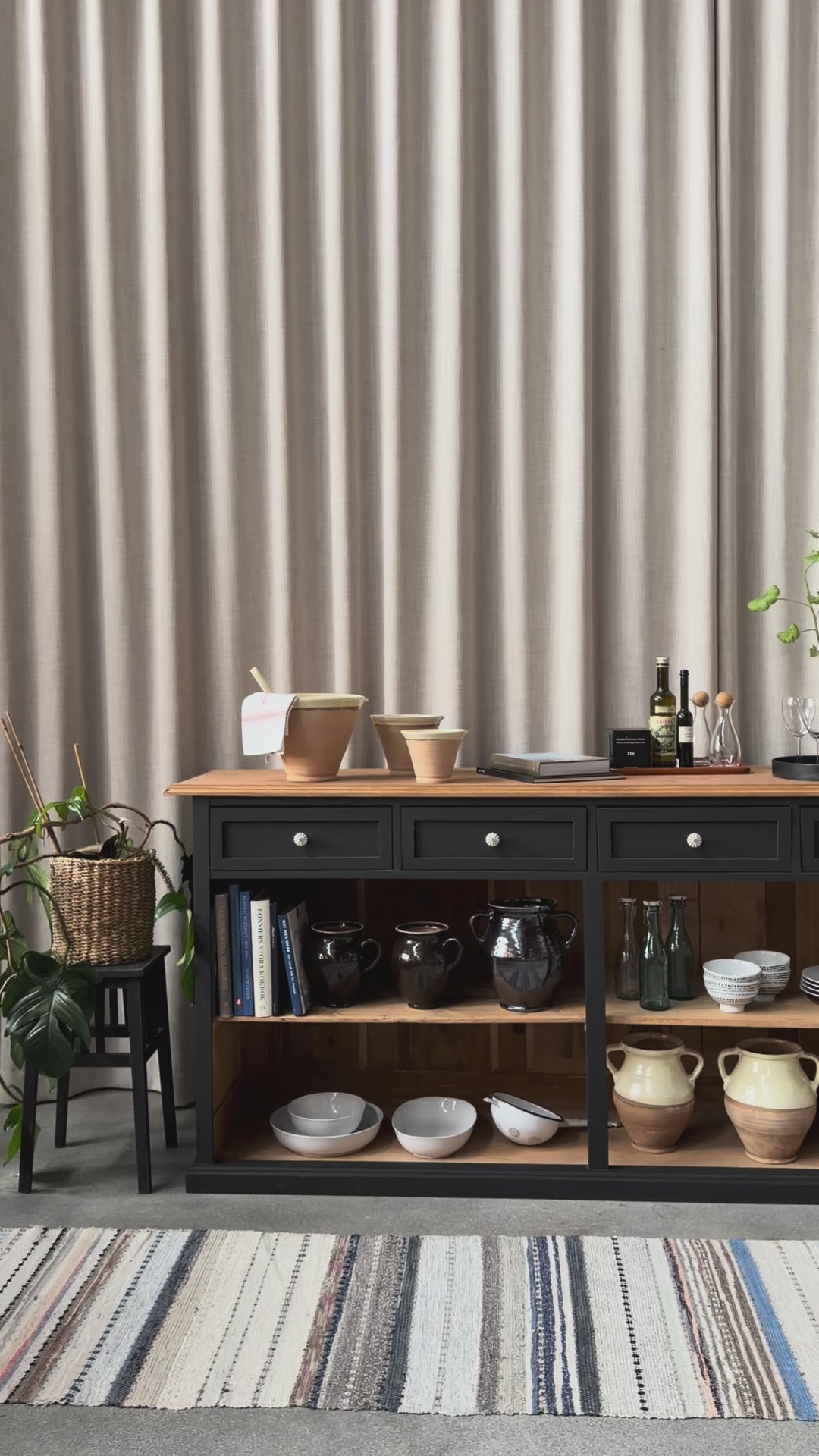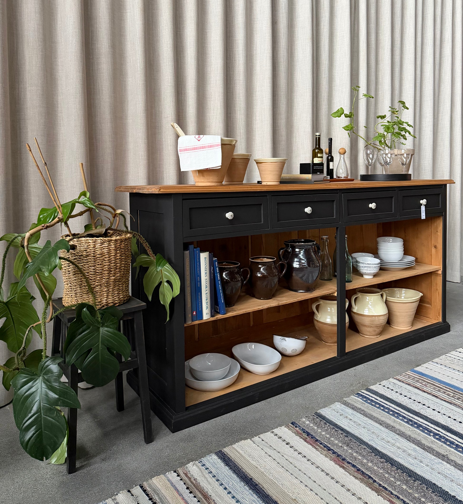 En vacker köksö/sidebord med en underhylla för praktisk förvaring. Vill du använda den som just köksö så kan vi sätta på hjul. Eftersom köksön är fin även på "baksidan" så passar den fint mitt i rummet, praktiskt och snyggt.