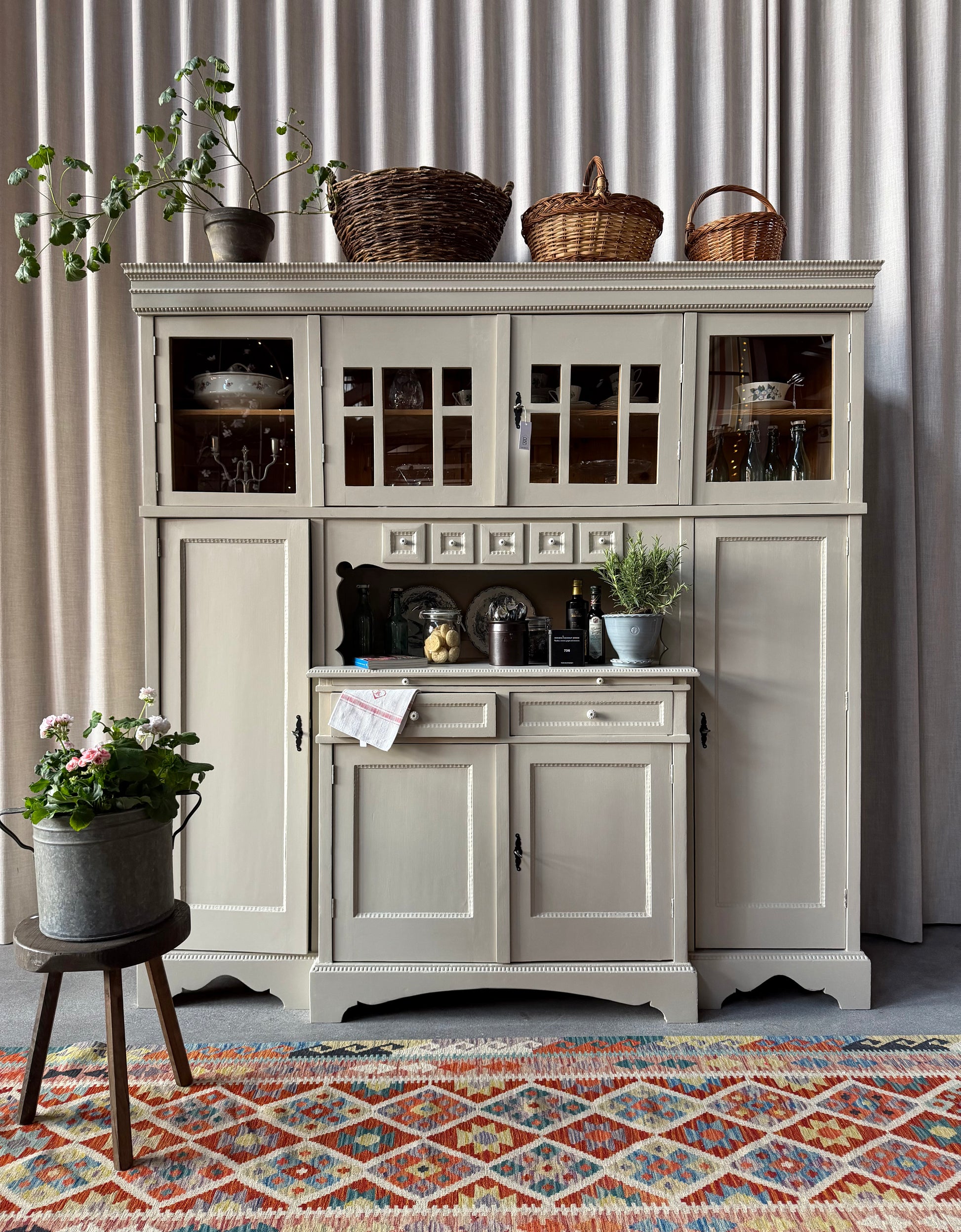 Ett gammalt, fantastiskt vackert köksskåp med härlig utformning fina snickerier och detaljer samt ståtlig höjd.
