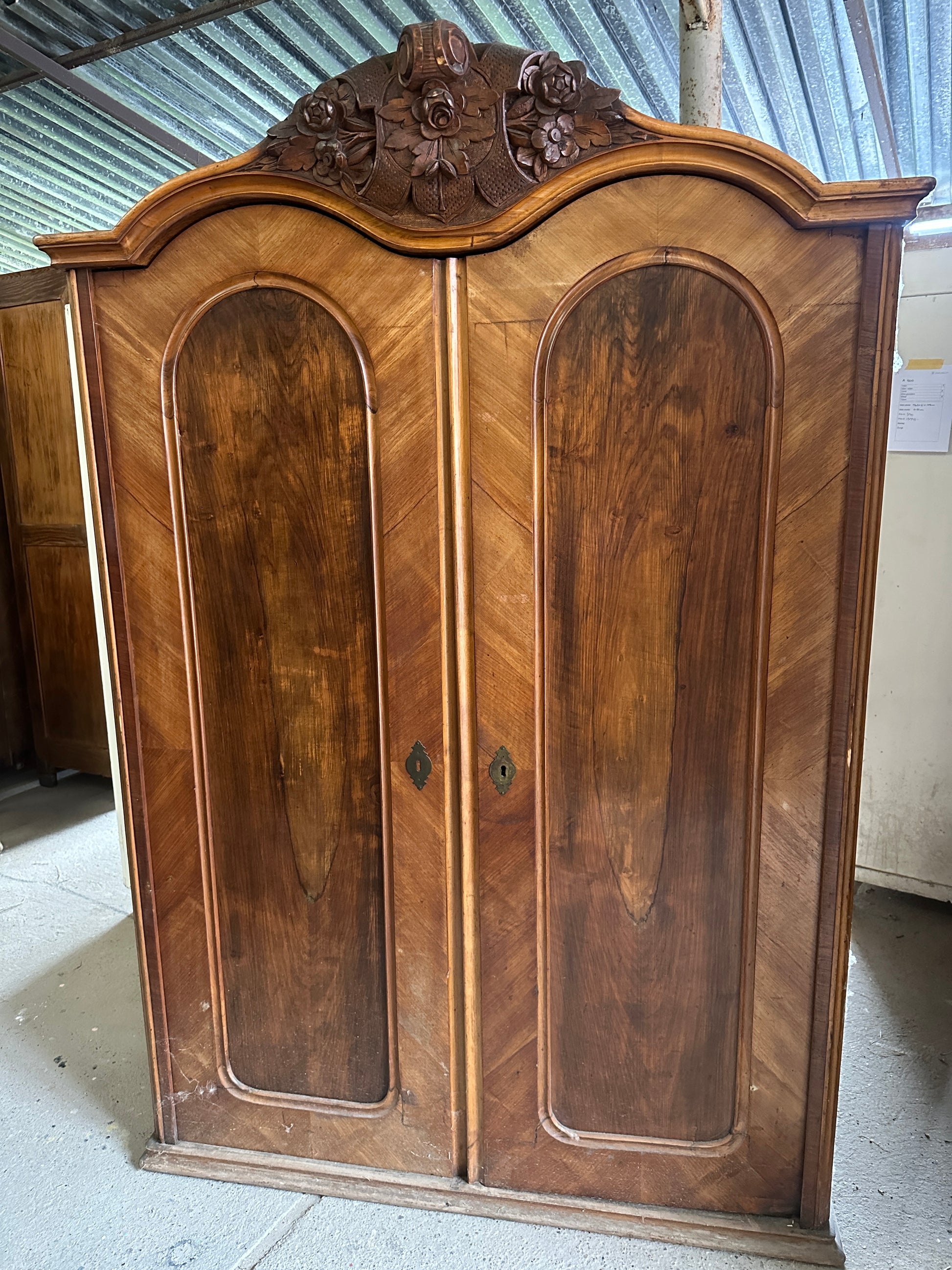 Det här är ett skåp som du kan välja utförande på. Skåpet står just nu i Ungern där det ska restaureras innan det kommer hem till oss i Sverige. Skåpet ser i dagsläget ganska eländigt ut men av erfarenhet vet vi att detta skåp efter restaurering av våra hantverkare kommer att bli väldigt fint!