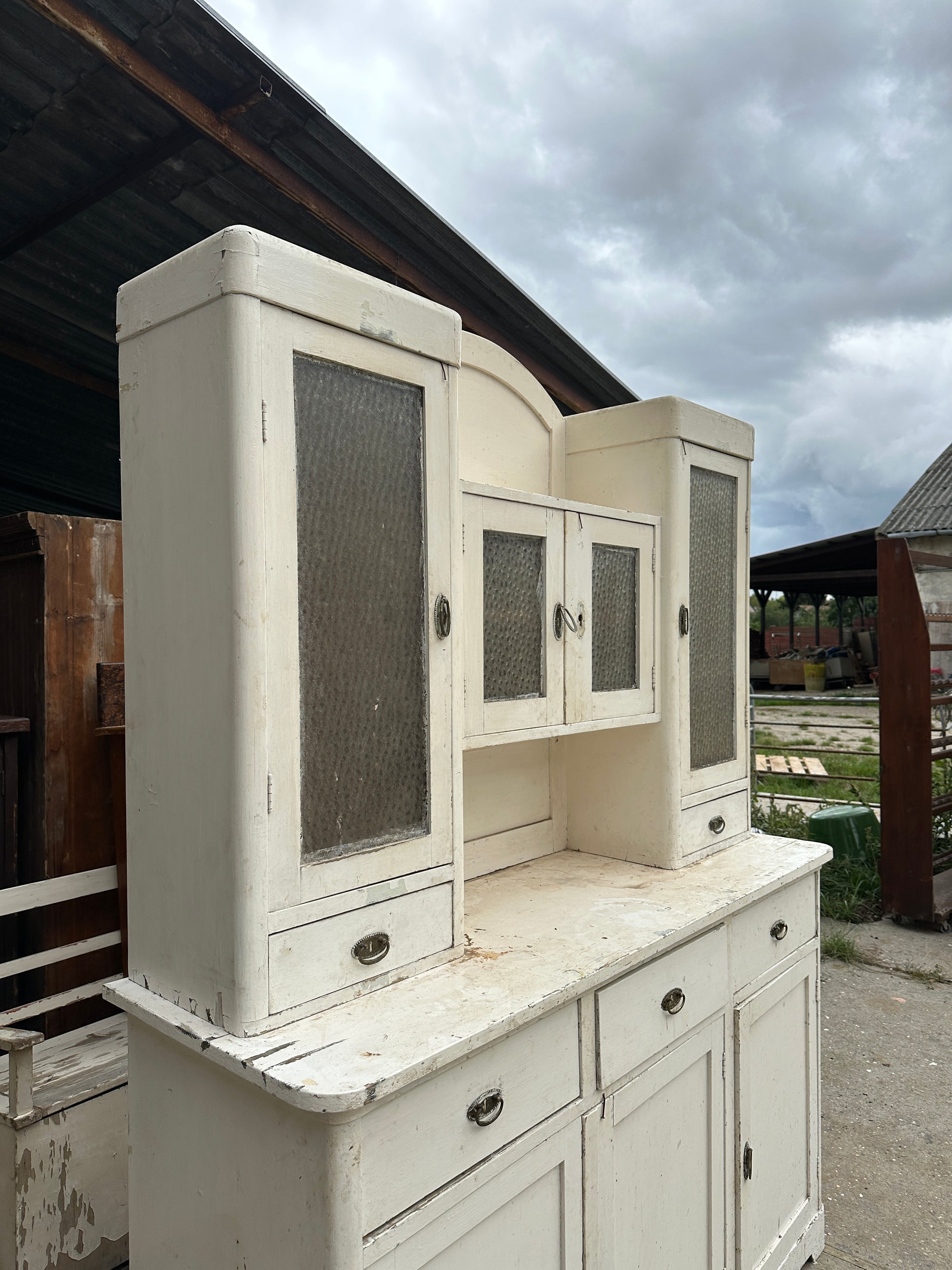 Det här är ett härligt köksskåp som du kan välja utförande på. Skåpet står just nu i Ungern där det ska restaureras innan det kommer hem till oss i Sverige. Skåpet ser i dagsläget ganska eländigt ut men av erfarenhet vet vi att detta skåp efter restaurering av våra hantverkare kommer att bli väldigt fint!